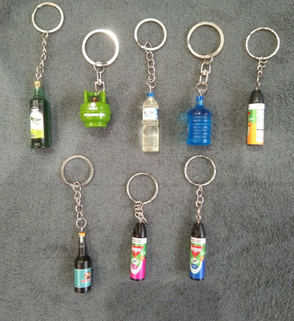 Gantungan Kunci Miniatur Unik – Gantungan Kunci Tabung Gas Galon Aqua Baygon Kecap Marjan