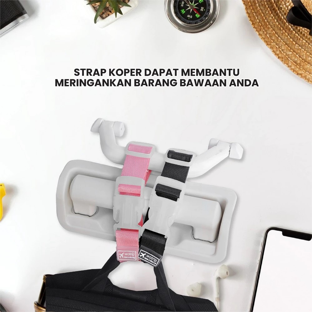 Strap koper berfungsi sebagai gantungan serbaguna yang dipasang di koper. Saat traveling pasti banyak barang yang ditenteng diantaranya tas dan makanan. Strap koper dapat membantu meringankan barang bawaan anda. Cukup gantung tas atau barang bawaan ke strap koper dan kaitkan strap ke gagang pegangan koper dan barang bawaan siap didorong bareng trolley bag. Tali dapat disesuaikan dan sesuai dengan berbagai ukuran tas yang memungkinkan keserbagunaan dan mengakomodasi kebutuhan pribadi Anda.