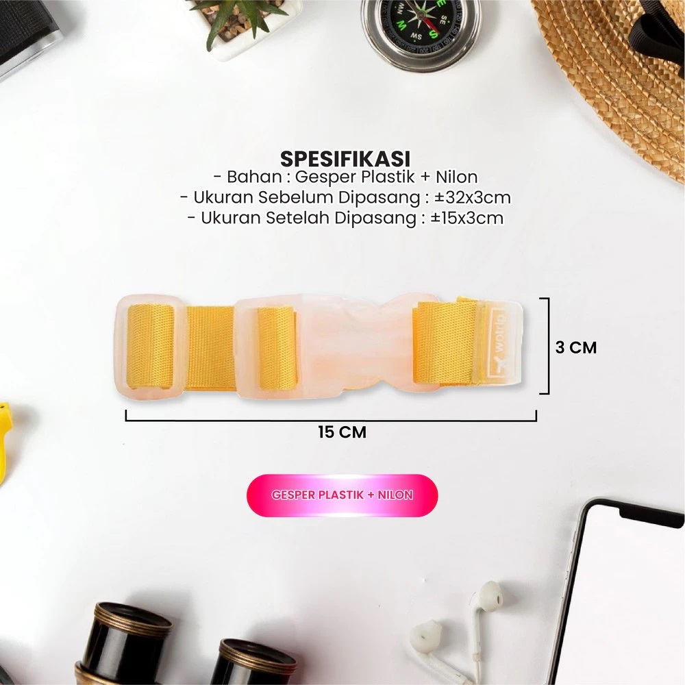– Bahan : Gesper Plastik + Nilon
