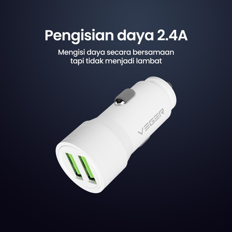 Veger CC04 Car Charger (Eceran/Perpcs) 2.4A 2 USB Port Charger Mobil