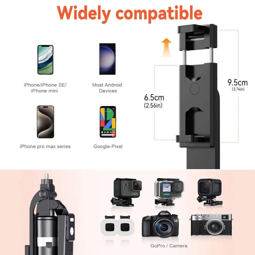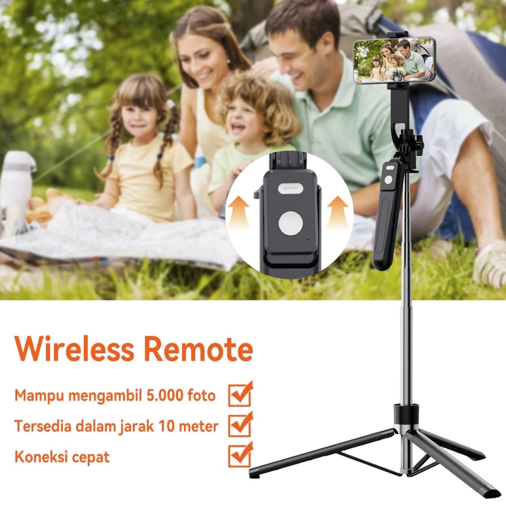 – Desain tripod dan tongsis 2 in 1, dapat beralih dengan bebas
