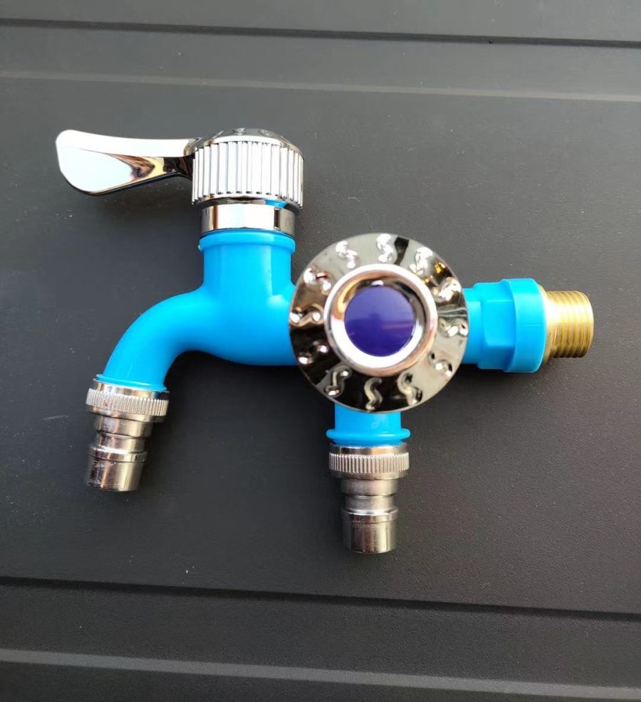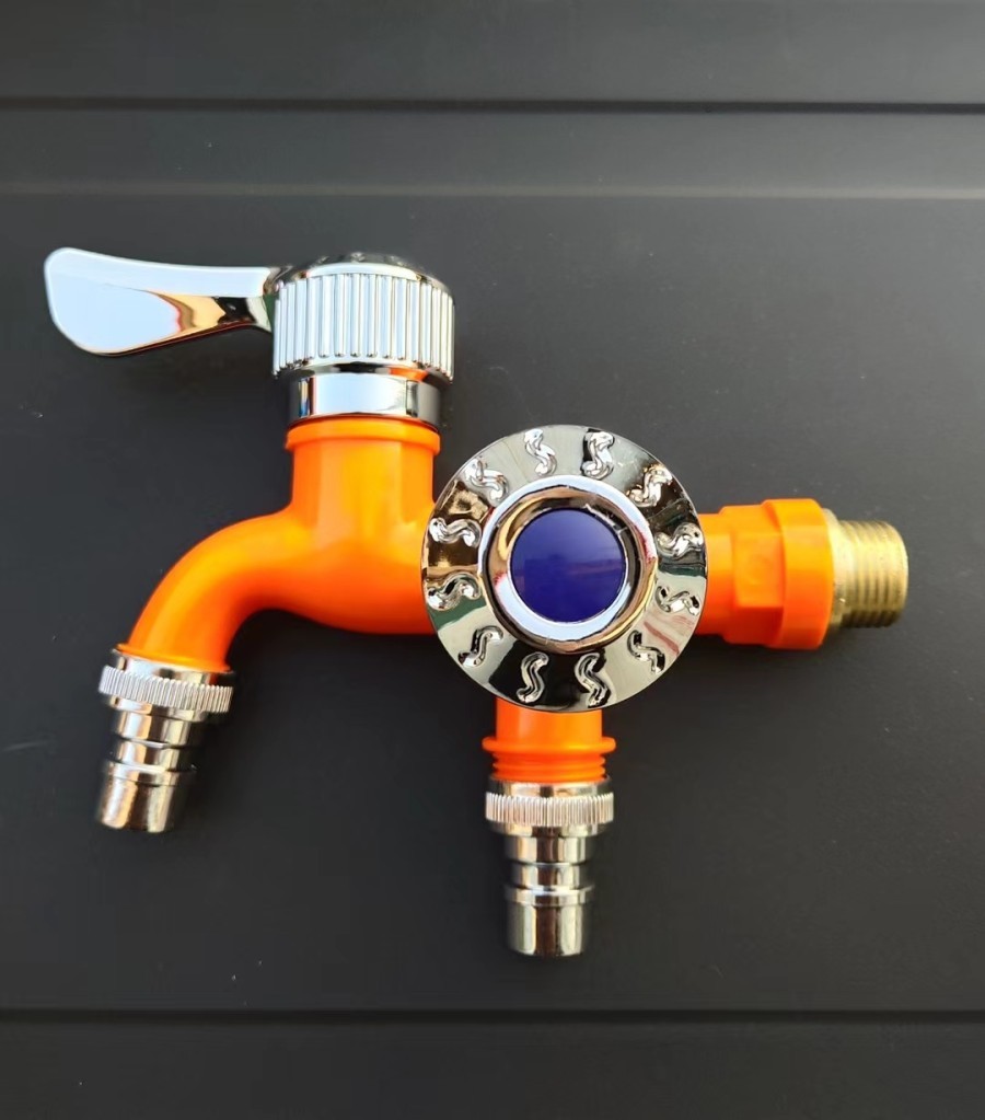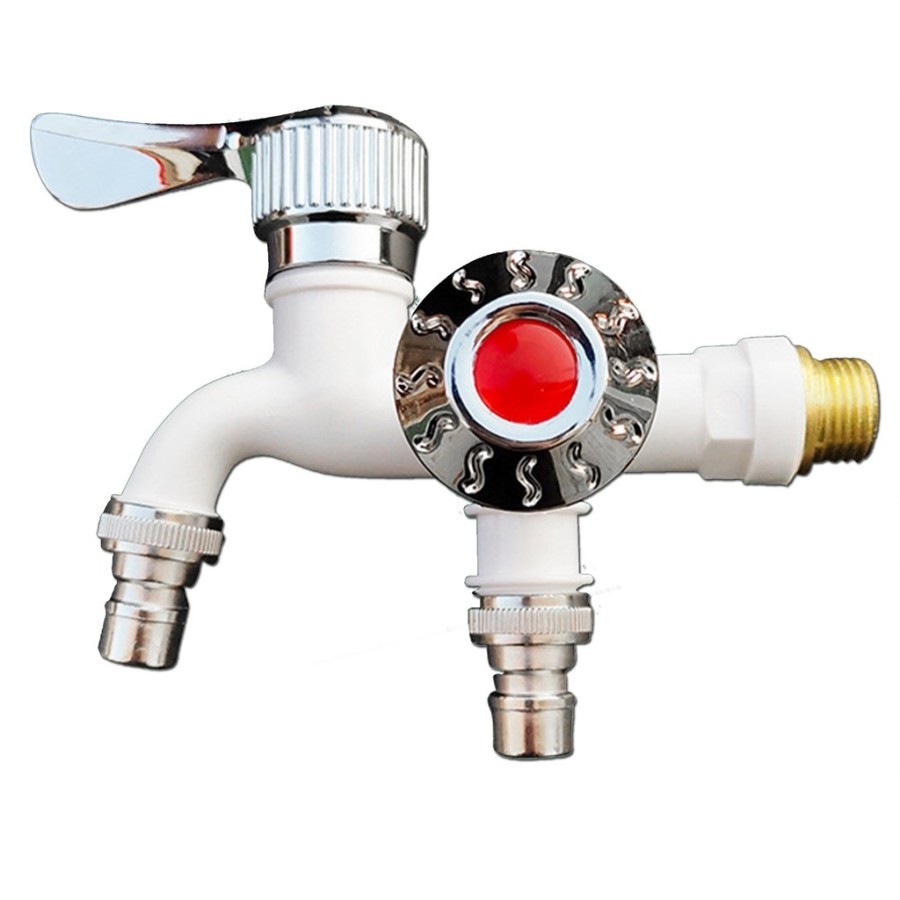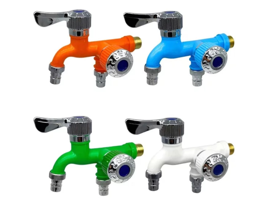 [PLASTIK] KEPALA KERAN CABANG 2 – Kepala keran cabang multifungsi dengan desain yang modern. Keran Cabang Air Double Plastik Setengah Inch. Keran dengan model cabang dengan sambungan yang terbuat dari kuningan memiliki 2 lubang air dengan tambahan drat pada ujung kran agar lebih mudah jika dipasangkan pada selang.