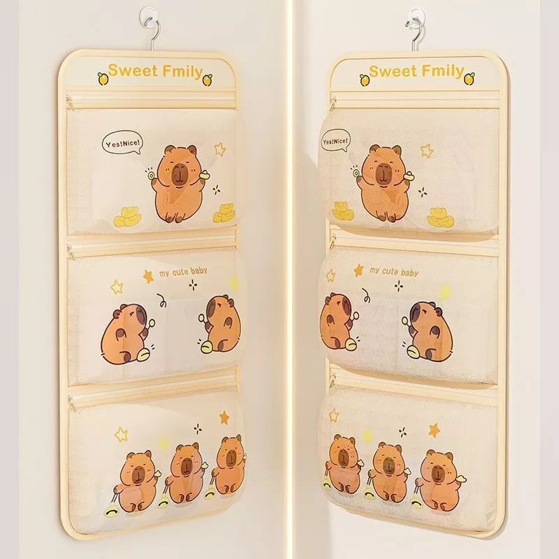 Hanging Storage Bag Jaring 3 Susun – Underwear Pouch Organizer Tas Penyimpanan Pakaian Dalam Karakter Capybara 3 Susun