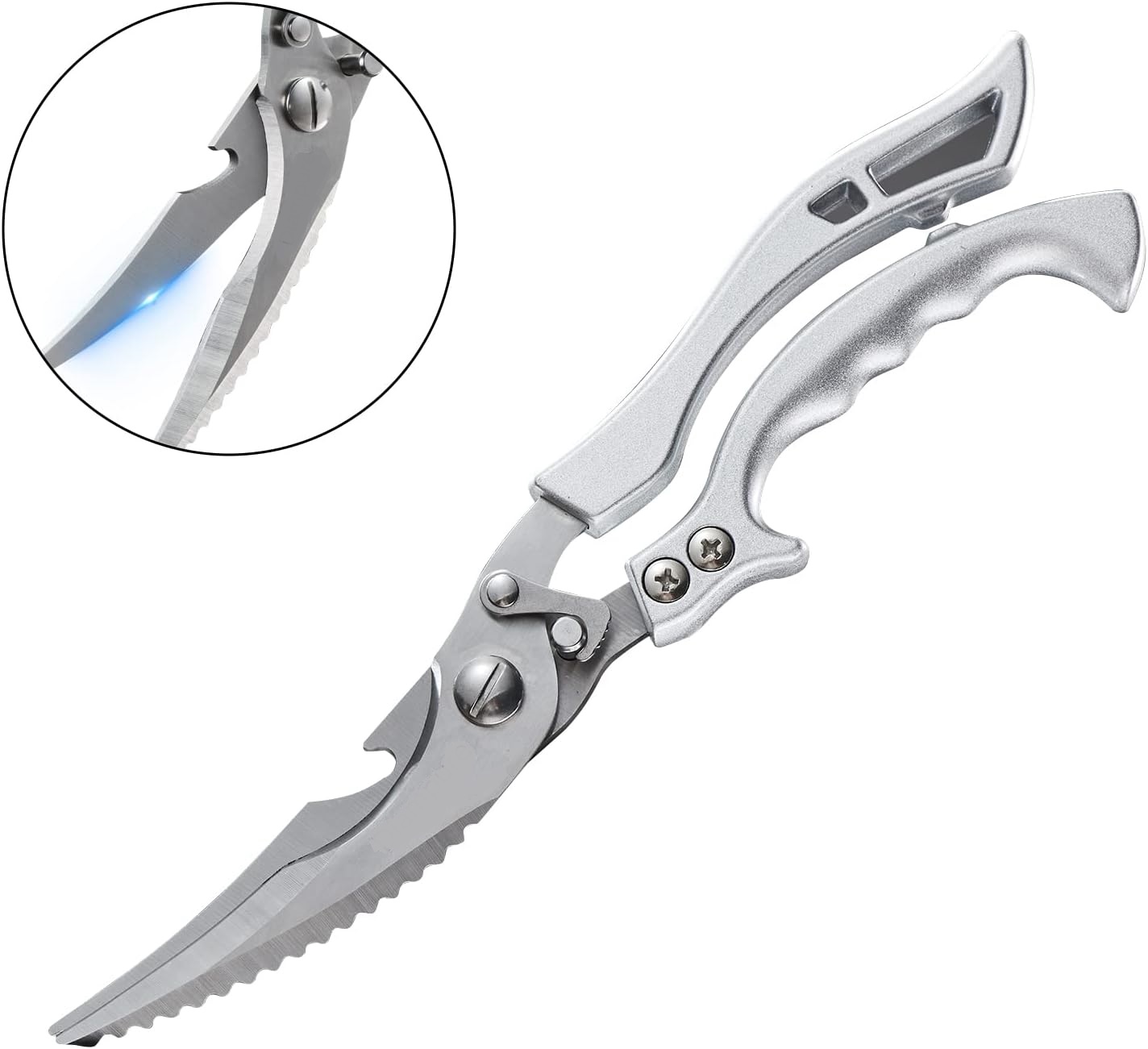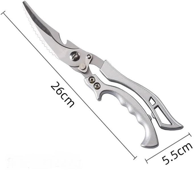Gunting dapur serbaguna yang tajam, dan kuat untuk membersihkan sisik ikan dan area pembuka botol, multifungsi, satu gunting dan serbaguna. Cocok untuk memotong tulang, ayam, daging, sayuran, membuka botol dengan mudah, dan membersihkan sisik ikan.
