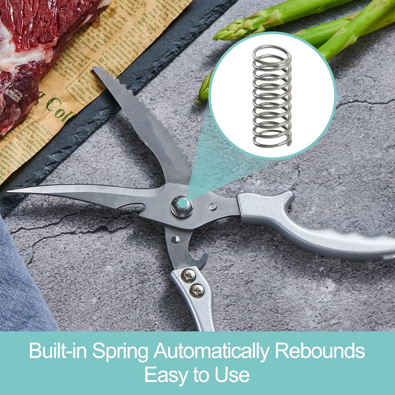 Gunting dapur ini memiliki pegas bawaan, yang dirancang untuk memantul secara otomatis. Tidak mudah terurai atau pecah saat digunakan, dapat mengurangi tekanan pada tangan, lebih nyaman dan menghemat tenaga.
